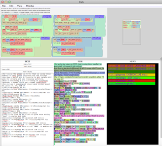 It's funny to me, I felt like I was hacking, but to a set, non-hacking result, a formal language definition. In Perl, I had to learn how to bless data as a class, to achieve polymorphic results. The parser is simply a regex:while ($texte=~ /(\n|;[^\n]+\n)|([\{\(\[\<;])|([+\w-]+)|([\}\)\]\>;])/g)So there is an interesting overlay of duck-typing, magical escaping, and OOP. My Javascript employs all the natural functions that already exist for drag and drop, so you could even edit it on the site before you upload it.